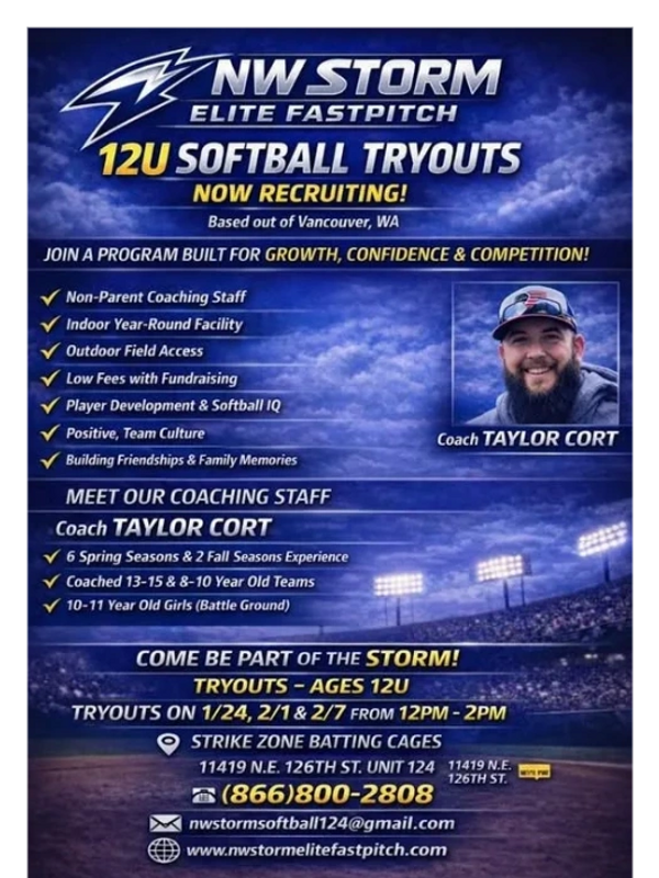 NW Storm Elite Fastpitch is looking for motivated athletes with strong skill sets, a competitive mindset, and a desire to develop at the highest level.